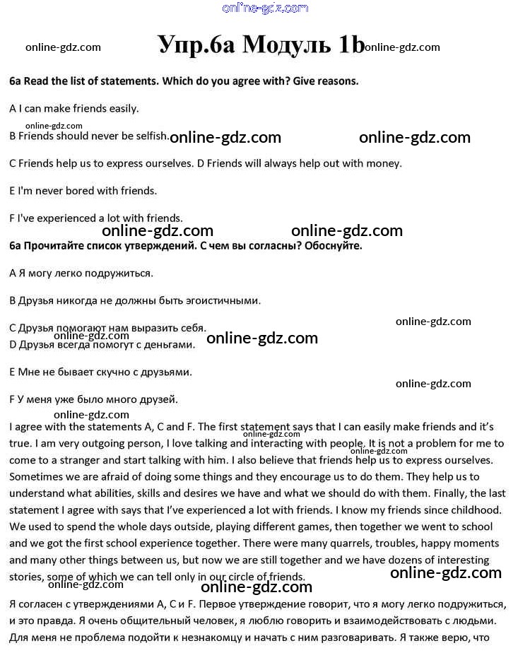 Готовые домашние задания по Английскому языку за 10 класс Учебник Афанасьева, Дули Spotlight 2015 - Часть 1b Module 1 6a