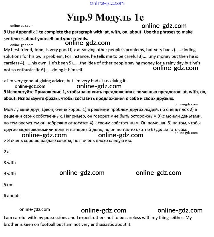 Готовые домашние задания по Английскому языку за 10 класс Учебник Афанасьева, Дули Spotlight 2015 - Часть 1c Module 1 9
