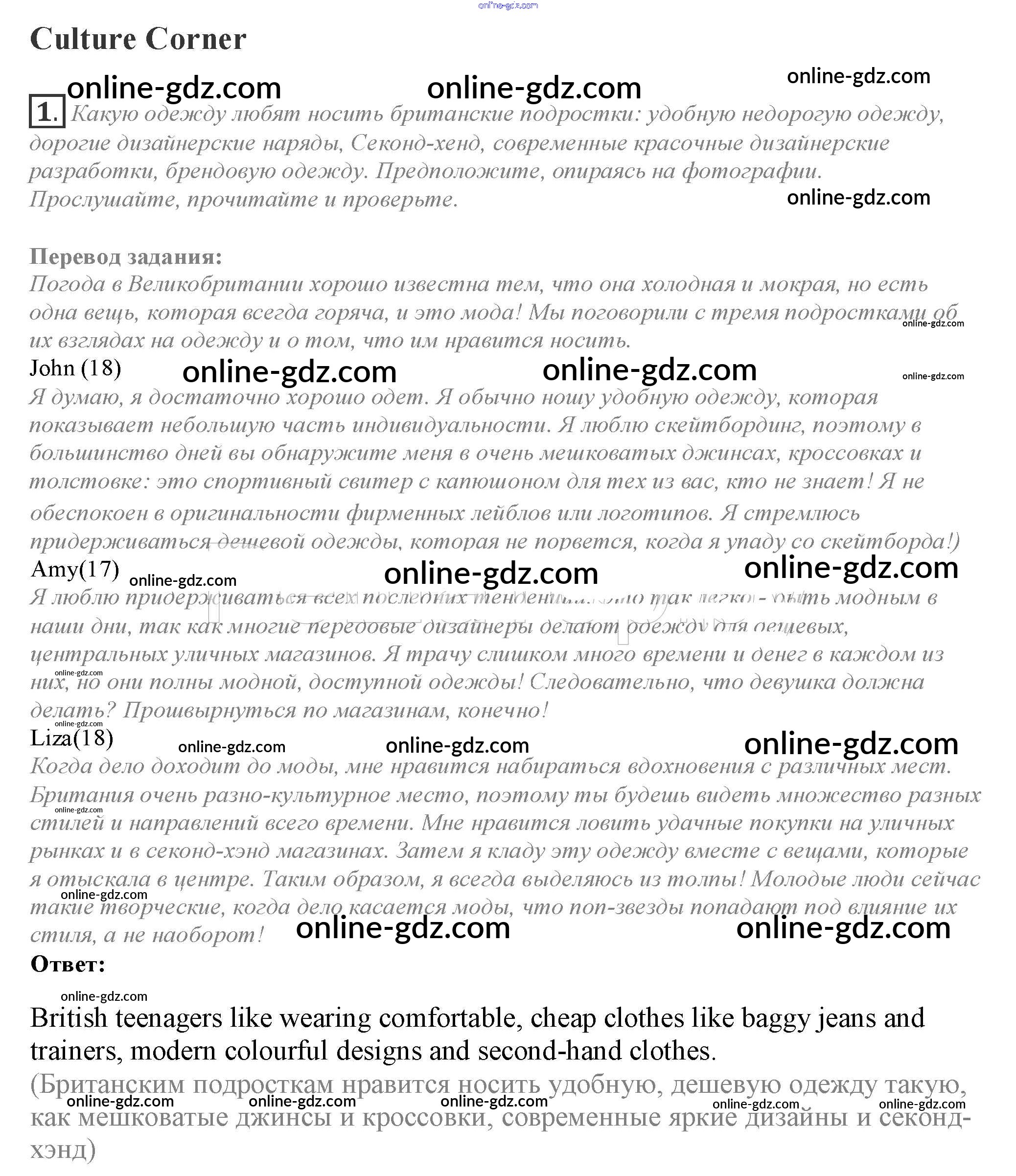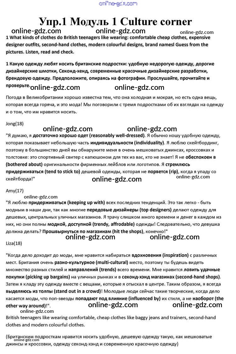 Готовые домашние задания по Английскому языку за 10 класс Учебник Афанасьева, Дули Spotlight 2015 - Culture corner Module 1 1