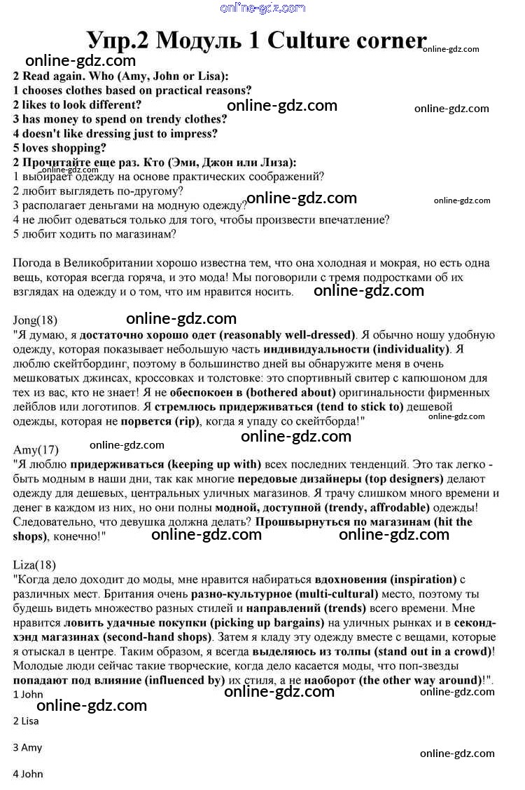 Готовые домашние задания по Английскому языку за 10 класс Учебник Афанасьева, Дули Spotlight 2015 - Culture corner Module 1 2