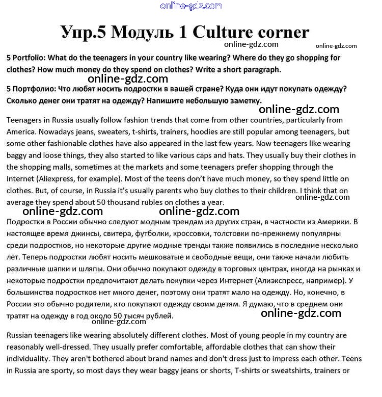 Готовые домашние задания по Английскому языку за 10 класс Учебник Афанасьева, Дули Spotlight 2015 - Culture corner Module 1 5