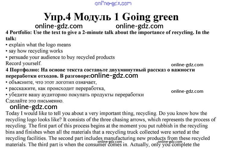 Готовые домашние задания по Английскому языку за 10 класс Учебник Афанасьева, Дули Spotlight 2015 - Going green Module 1 4