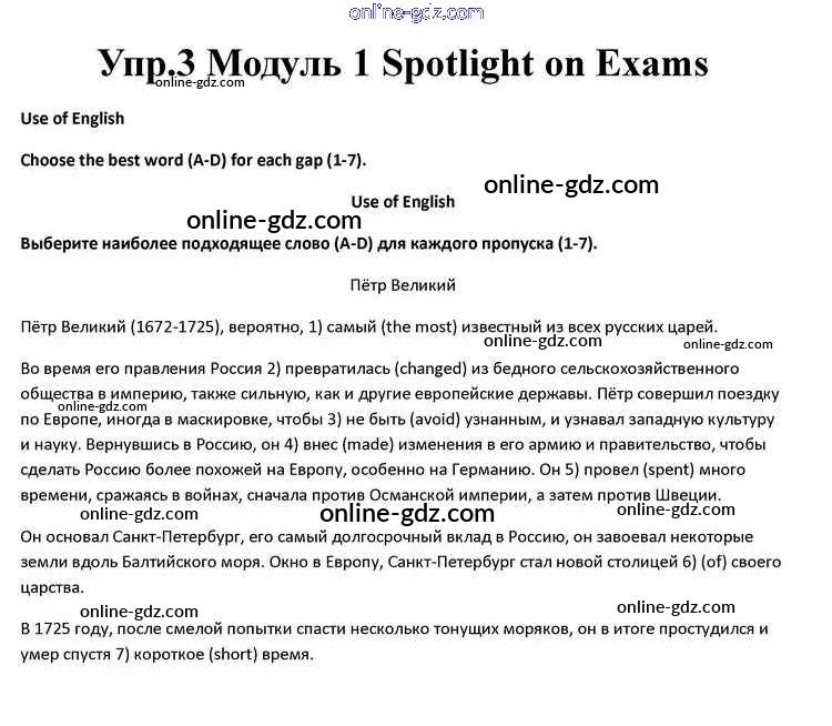 Готовые домашние задания по Английскому языку за 10 класс Учебник Афанасьева, Дули Spotlight 2015 - Spotlight on Exams Module 1 3