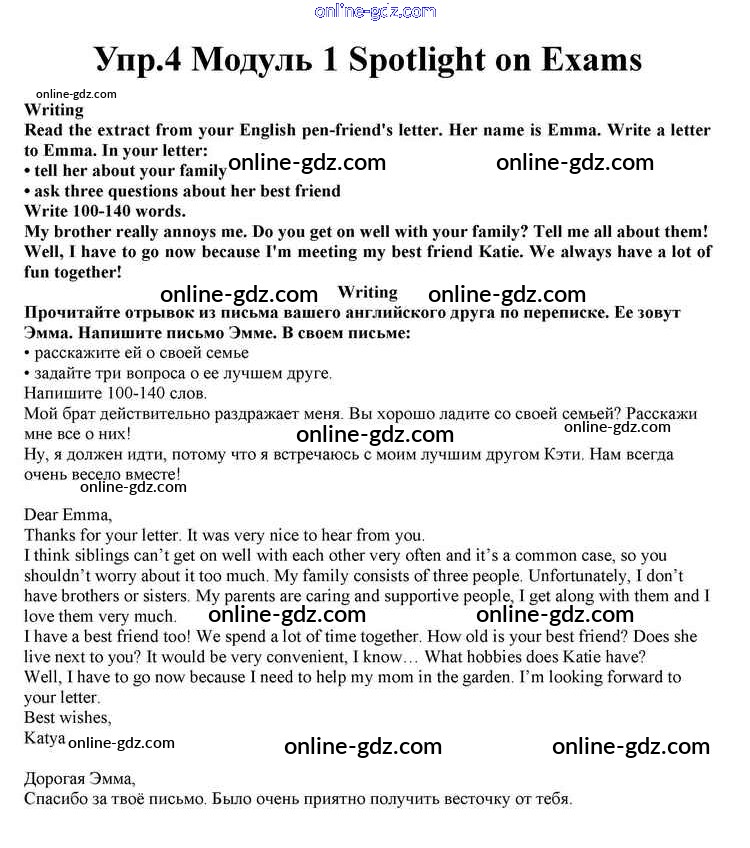 Готовые домашние задания по Английскому языку за 10 класс Учебник Афанасьева, Дули Spotlight 2015 - Spotlight on Exams Module 1 4