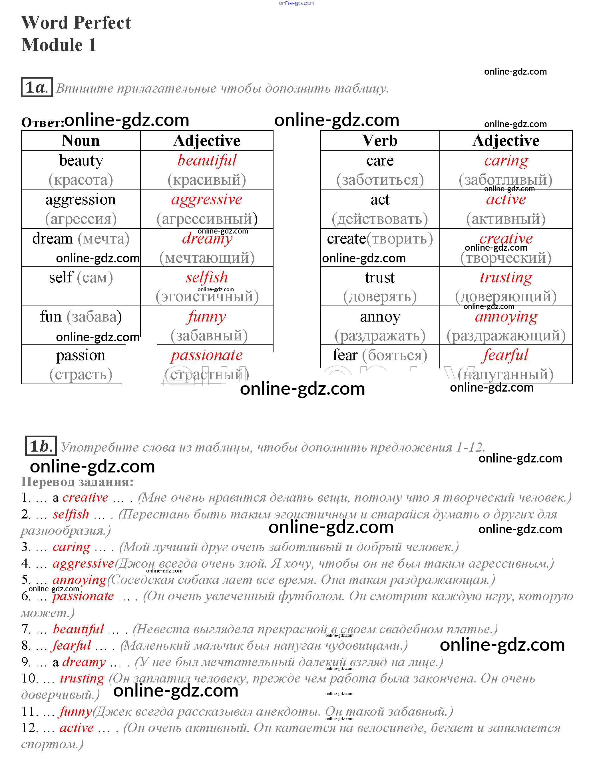 Готовые домашние задания по Английскому языку за 10 класс Учебник Афанасьева, Дули Spotlight 2015 - Module 1 Word Perfect 1