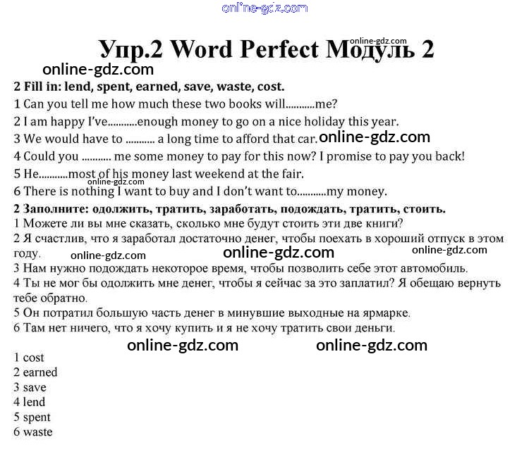 Готовые домашние задания по Английскому языку за 10 класс Учебник Афанасьева, Дули Spotlight 2015 - Module 2 Word Perfect 2