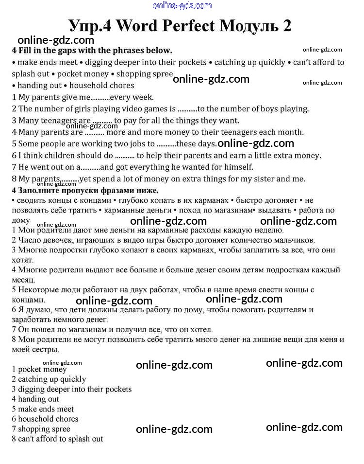 Готовые домашние задания по Английскому языку за 10 класс Учебник Афанасьева, Дули Spotlight 2015 - Module 2 Word Perfect 4