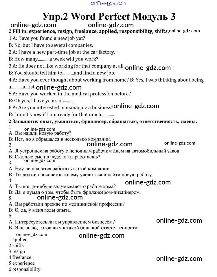 Готовые домашние задания по Английскому языку за 10 класс Учебник Афанасьева, Дули Spotlight 2015 - Module 3 Word Perfect 2