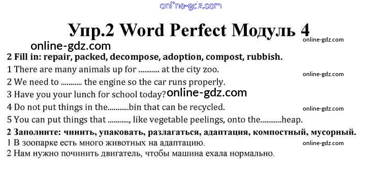Готовые домашние задания по Английскому языку за 10 класс Учебник Афанасьева, Дули Spotlight 2015 - Module 4 Word Perfect 2