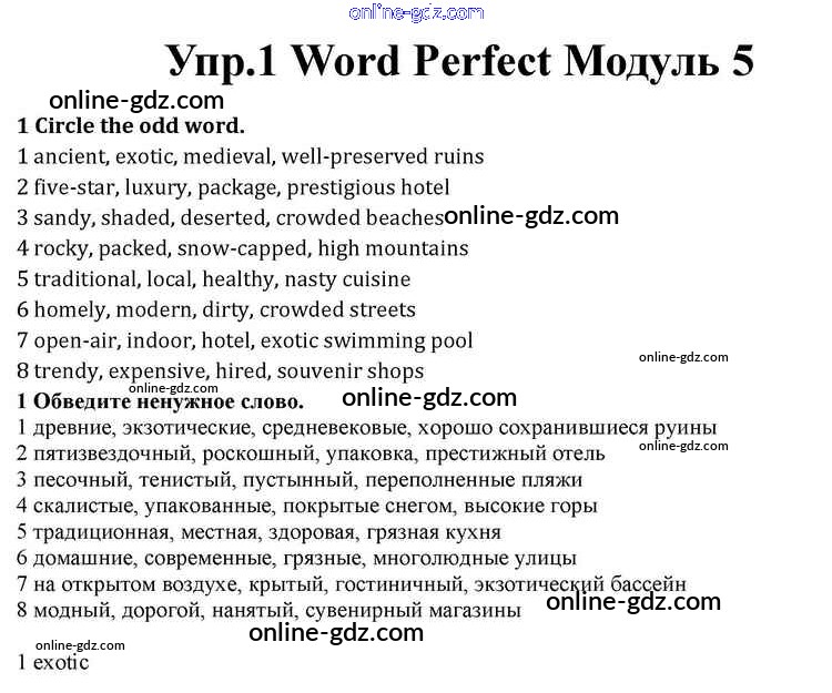 Готовые домашние задания по Английскому языку за 10 класс Учебник Афанасьева, Дули Spotlight 2015 - Module 5 Word Perfect 1