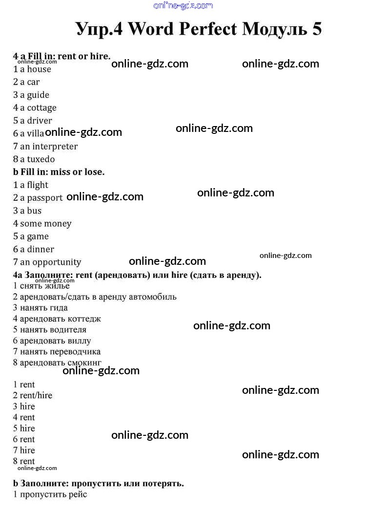 Готовые домашние задания по Английскому языку за 10 класс Учебник Афанасьева, Дули Spotlight 2015 - Module 5 Word Perfect 4