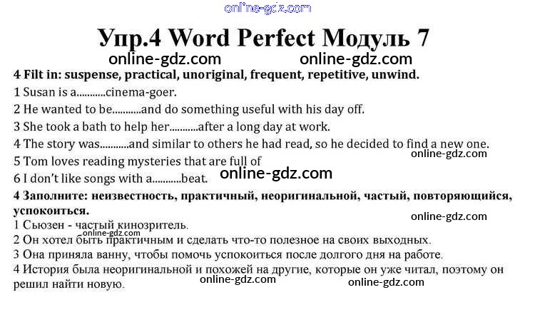 Готовые домашние задания по Английскому языку за 10 класс Учебник Афанасьева, Дули Spotlight 2015 - Module 7 Word Perfect 4