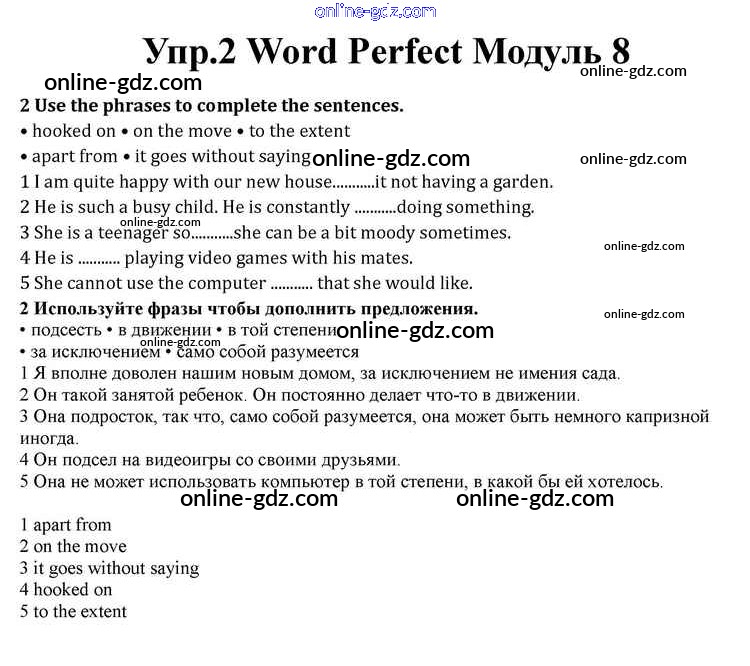 Готовые домашние задания по Английскому языку за 10 класс Учебник Афанасьева, Дули Spotlight 2015 - Module 8 Word Perfect 2