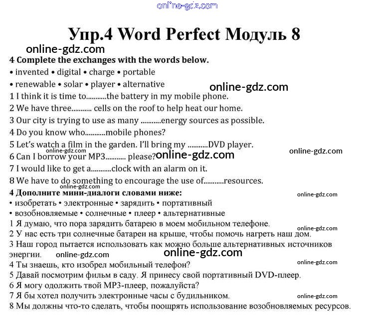 Готовые домашние задания по Английскому языку за 10 класс Учебник Афанасьева, Дули Spotlight 2015 - Module 8 Word Perfect 4
