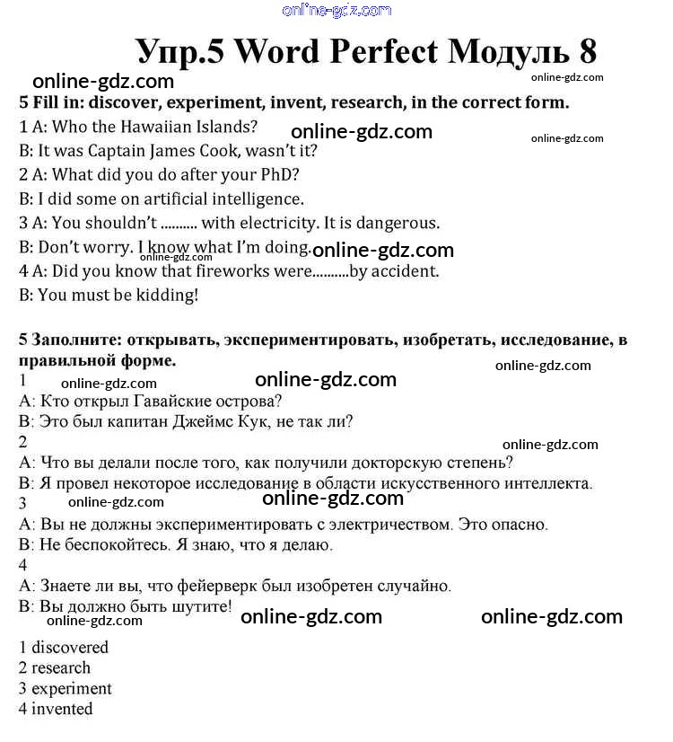 Готовые домашние задания по Английскому языку за 10 класс Учебник Афанасьева, Дули Spotlight 2015 - Module 8 Word Perfect 5