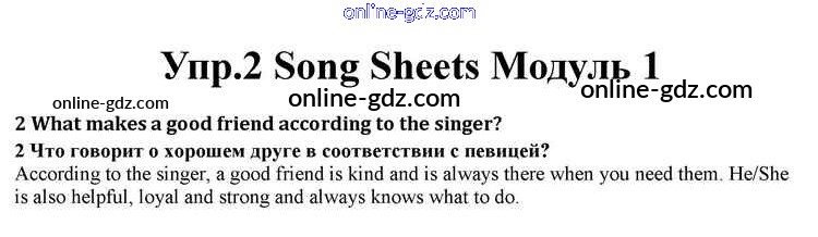 Готовые домашние задания по Английскому языку за 10 класс Учебник Афанасьева, Дули Spotlight 2015 - Module 1 Song Sheets 2