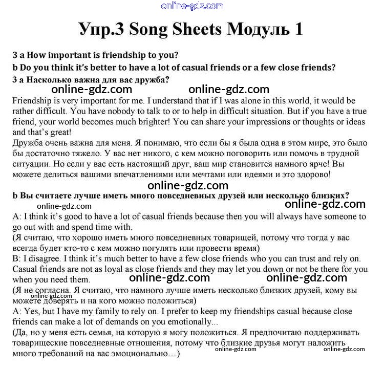 Готовые домашние задания по Английскому языку за 10 класс Учебник Афанасьева, Дули Spotlight 2015 - Module 1 Song Sheets 3
