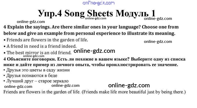 Готовые домашние задания по Английскому языку за 10 класс Учебник Афанасьева, Дули Spotlight 2015 - Module 1 Song Sheets 4