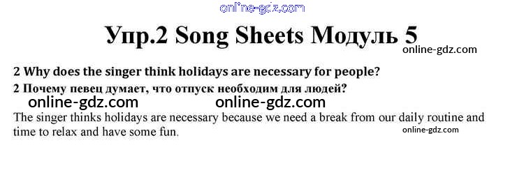 Готовые домашние задания по Английскому языку за 10 класс Учебник Афанасьева, Дули Spotlight 2015 - Module 5 Song Sheets 2
