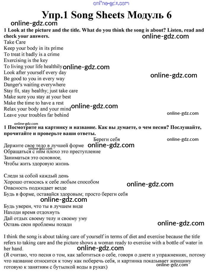 Готовые домашние задания по Английскому языку за 10 класс Учебник Афанасьева, Дули Spotlight 2015 - Module 6 Song Sheets 1