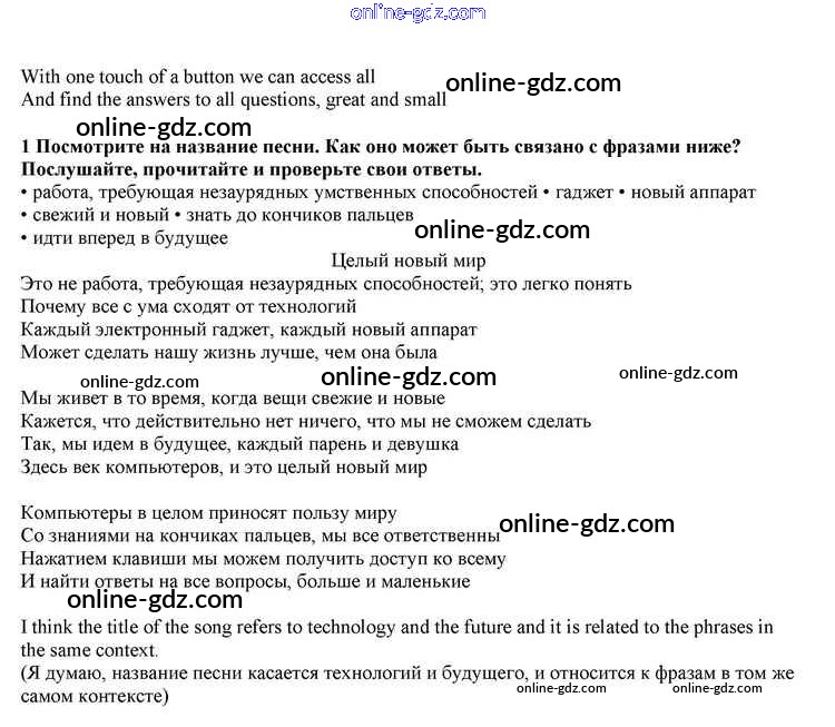Готовые домашние задания по Английскому языку за 10 класс Учебник Афанасьева, Дули Spotlight 2015 - Module 8 Song Sheets 1