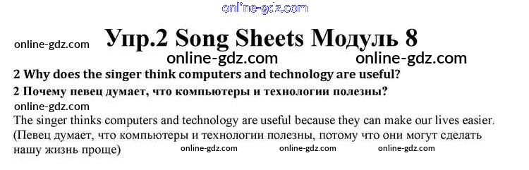 Готовые домашние задания по Английскому языку за 10 класс Учебник Афанасьева, Дули Spotlight 2015 - Module 8 Song Sheets 2