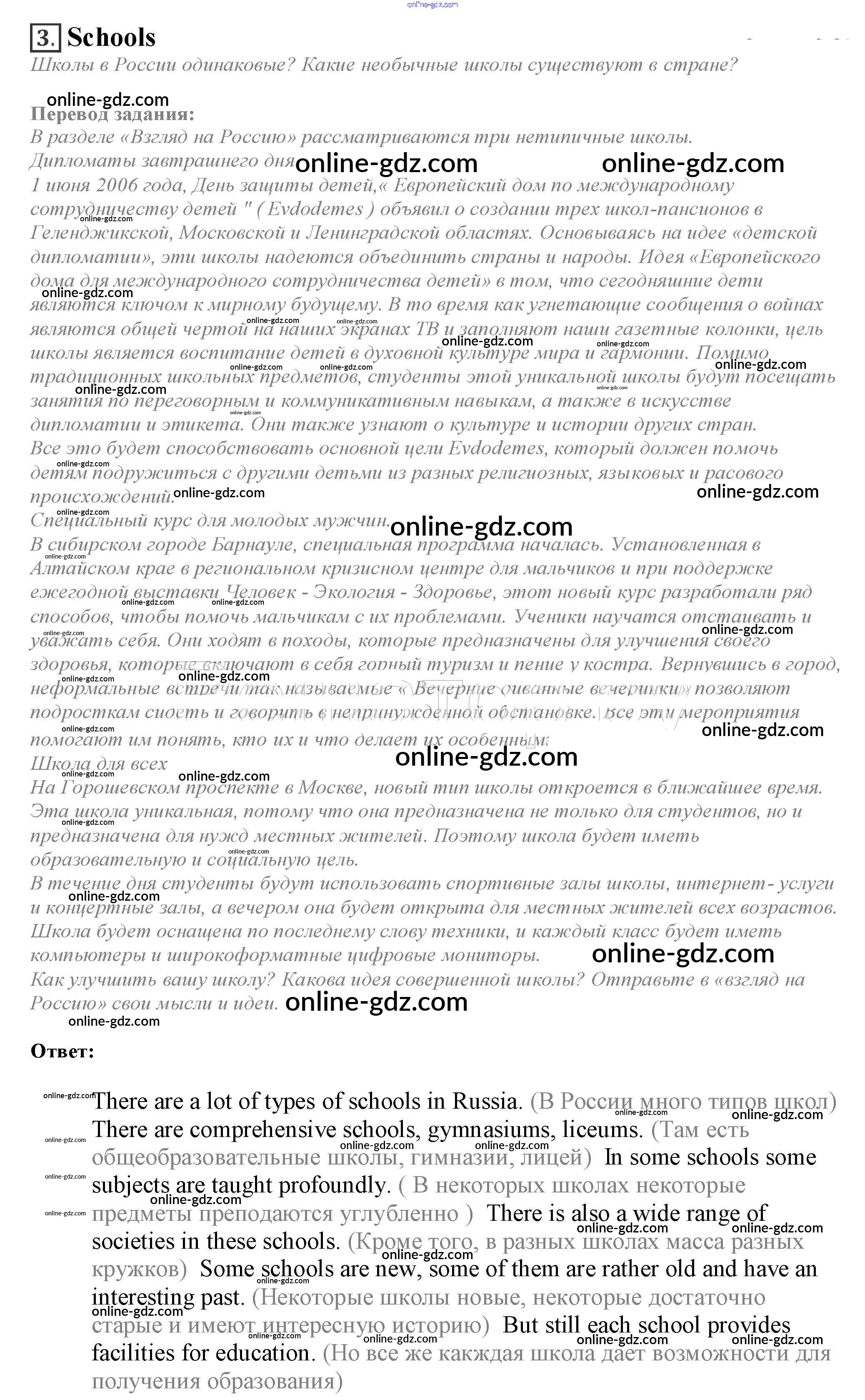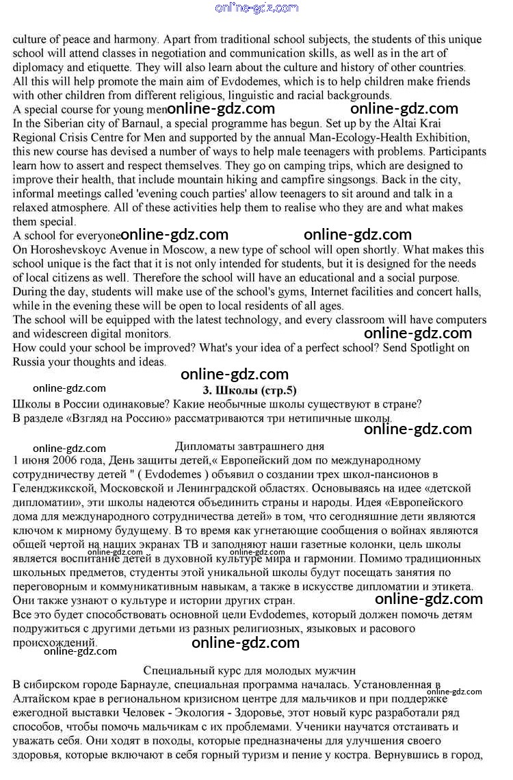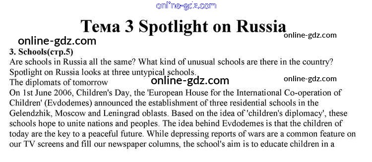Готовые домашние задания по Английскому языку за 10 класс Учебник Афанасьева, Дули Spotlight 2015 - Spotlight on Russia 3. Schools