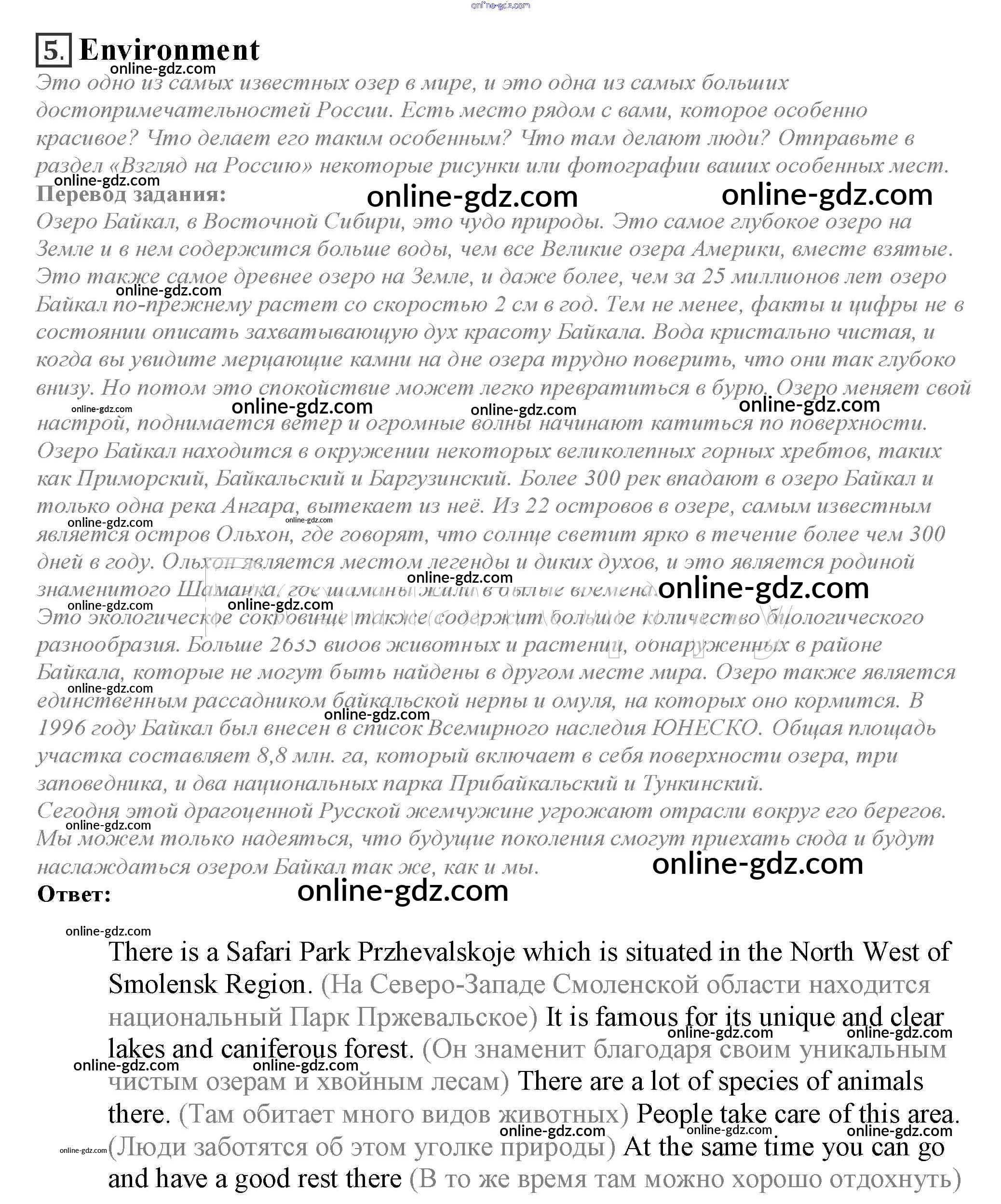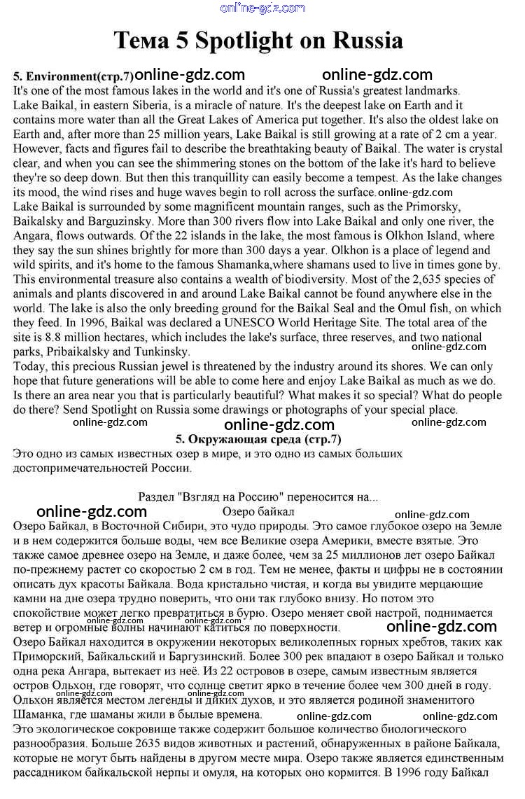 Готовые домашние задания по Английскому языку за 10 класс Учебник Афанасьева, Дули Spotlight 2015 - Spotlight on Russia 5. Environment