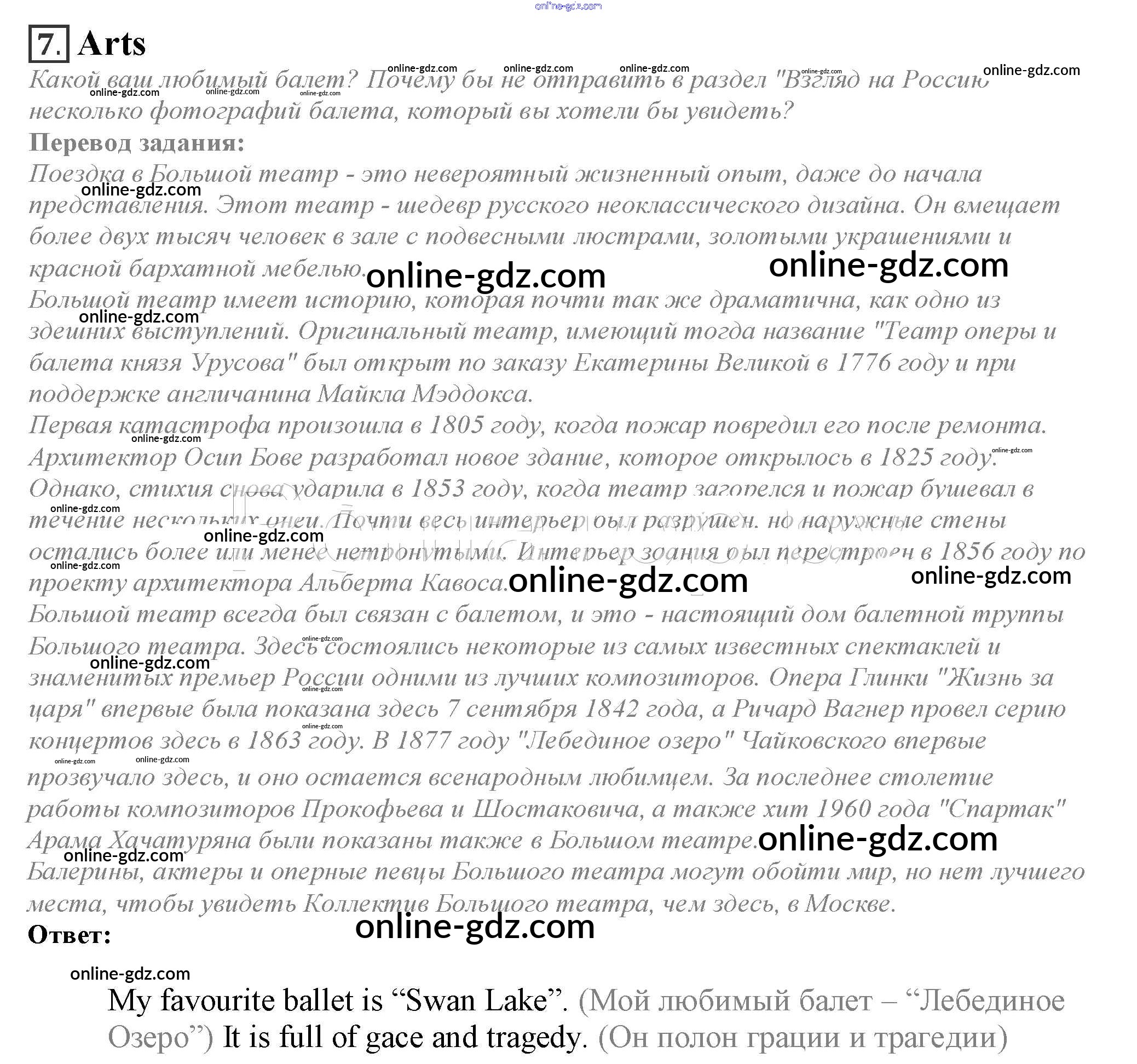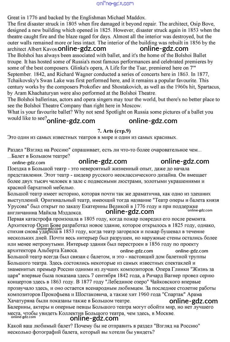 Готовые домашние задания по Английскому языку за 10 класс Учебник Афанасьева, Дули Spotlight 2015 - Spotlight on Russia 7. Arts