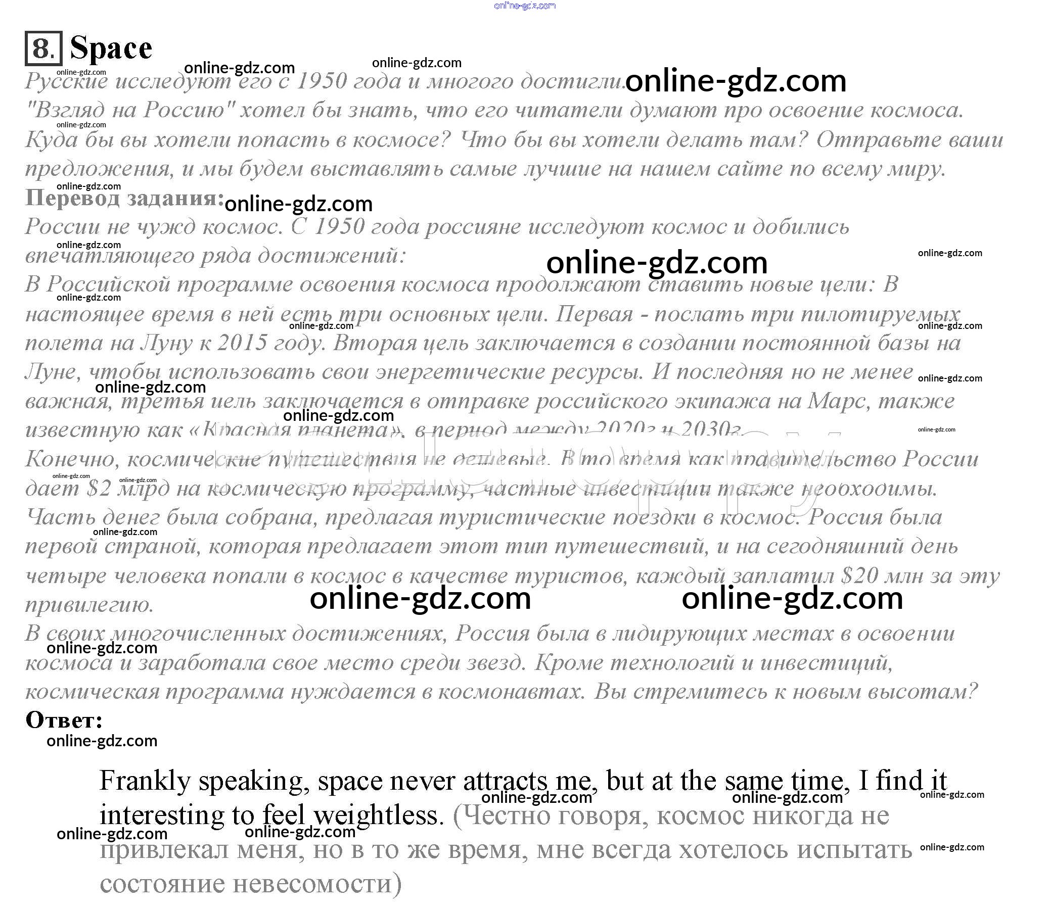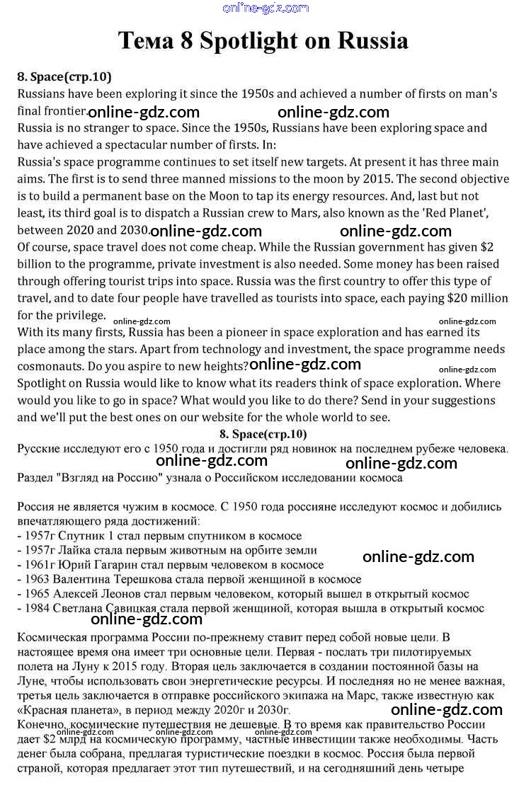 Готовые домашние задания по Английскому языку за 10 класс Учебник Афанасьева, Дули Spotlight 2015 - Spotlight on Russia 8. Space