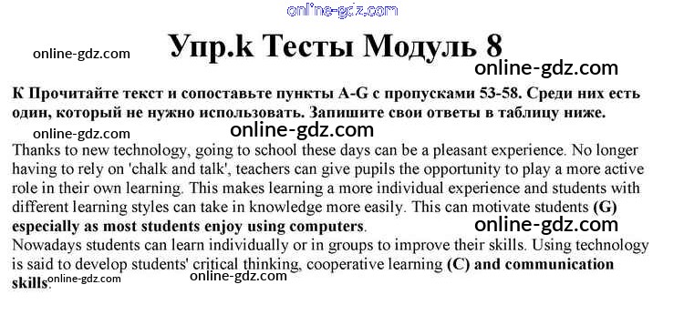 Готовые домашние задания по Английскому языку за 10 класс Учебник Афанасьева, Дули Spotlight 2015 - Modul 8 Книга с тестами k