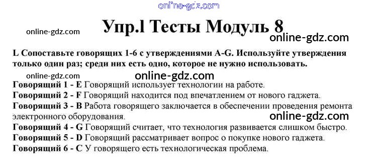 Готовые домашние задания по Английскому языку за 10 класс Учебник Афанасьева, Дули Spotlight 2015 - Modul 8 Книга с тестами l