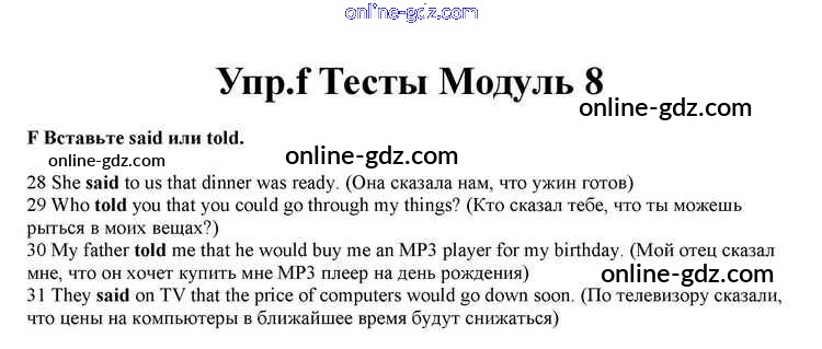 Готовые домашние задания по Английскому языку за 10 класс Учебник Афанасьева, Дули Spotlight 2015 - Modul 8 Книга с тестами f