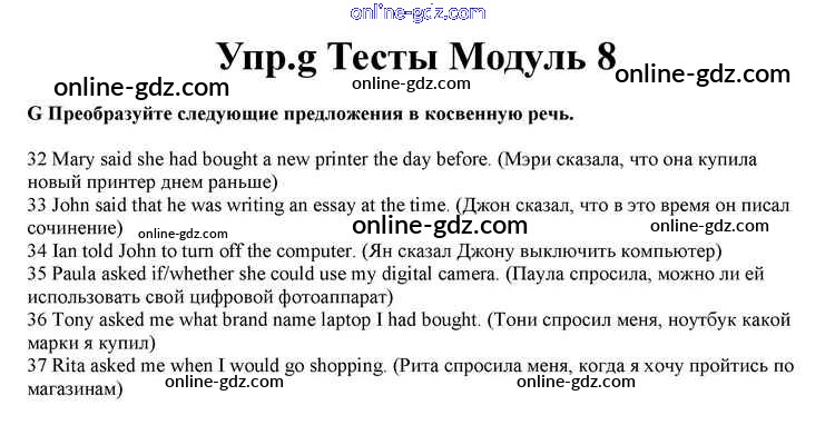 Готовые домашние задания по Английскому языку за 10 класс Учебник Афанасьева, Дули Spotlight 2015 - Modul 8 Книга с тестами g