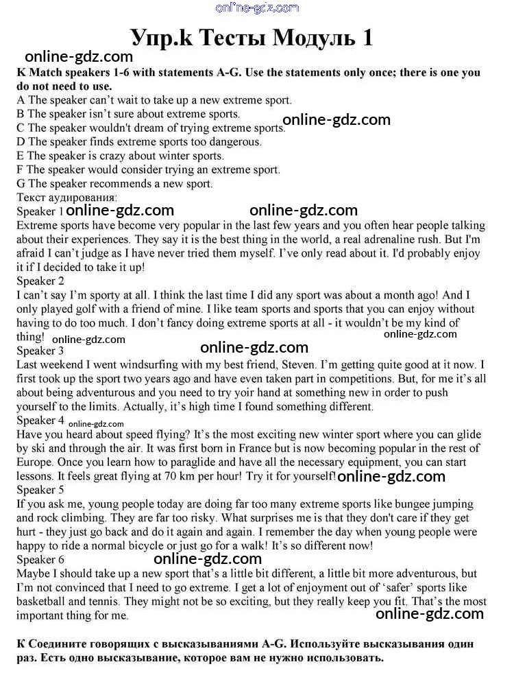 Готовые домашние задания по Английскому языку за 10 класс Учебник Афанасьева, Дули Spotlight 2015 - Modul 1 Книга с тестами k