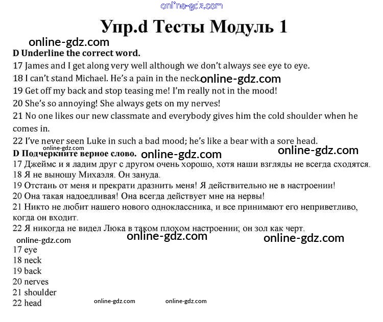 Готовые домашние задания по Английскому языку за 10 класс Учебник Афанасьева, Дули Spotlight 2015 - Modul 1 Книга с тестами d