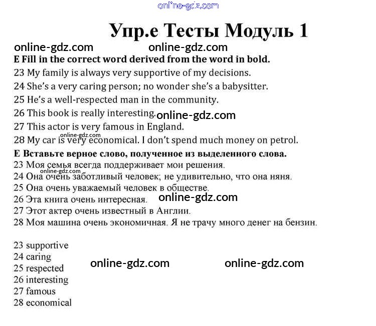 Готовые домашние задания по Английскому языку за 10 класс Учебник Афанасьева, Дули Spotlight 2015 - Modul 1 Книга с тестами e