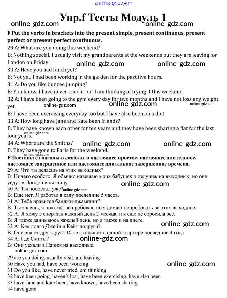 Готовые домашние задания по Английскому языку за 10 класс Учебник Афанасьева, Дули Spotlight 2015 - Modul 1 Книга с тестами f