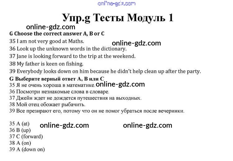 Готовые домашние задания по Английскому языку за 10 класс Учебник Афанасьева, Дули Spotlight 2015 - Modul 1 Книга с тестами g