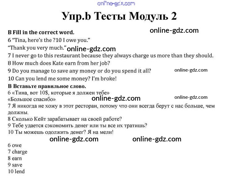Готовые домашние задания по Английскому языку за 10 класс Учебник Афанасьева, Дули Spotlight 2015 - Modul 2 Книга с тестами b