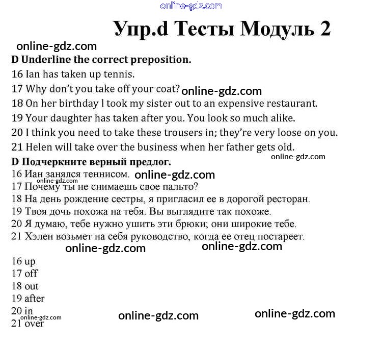 Готовые домашние задания по Английскому языку за 10 класс Учебник Афанасьева, Дули Spotlight 2015 - Modul 2 Книга с тестами d