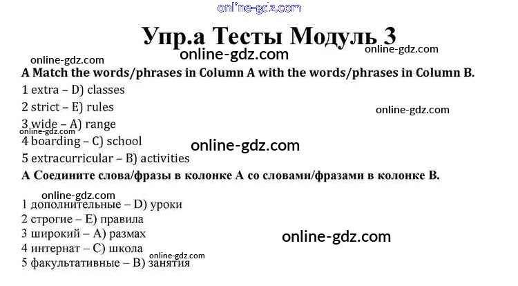 Готовые домашние задания по Английскому языку за 10 класс Учебник Афанасьева, Дули Spotlight 2015 - Modul 3 Книга с тестами a