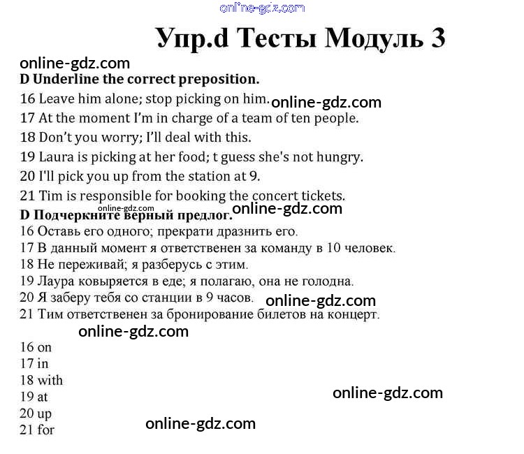 Готовые домашние задания по Английскому языку за 10 класс Учебник Афанасьева, Дули Spotlight 2015 - Modul 3 Книга с тестами d