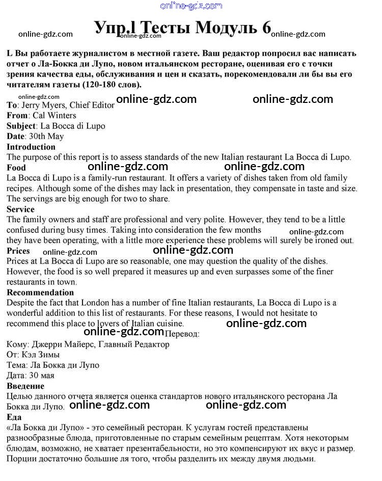 Готовые домашние задания по Английскому языку за 10 класс Учебник Афанасьева, Дули Spotlight 2015 - Modul 6 Книга с тестами l