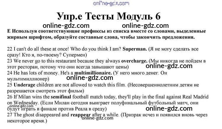 Готовые домашние задания по Английскому языку за 10 класс Учебник Афанасьева, Дули Spotlight 2015 - Modul 6 Книга с тестами e