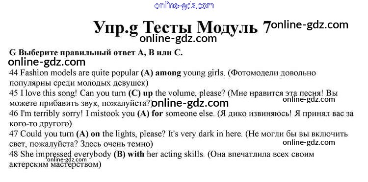 Готовые домашние задания по Английскому языку за 10 класс Учебник Афанасьева, Дули Spotlight 2015 - Modul 7 Книга с тестами g