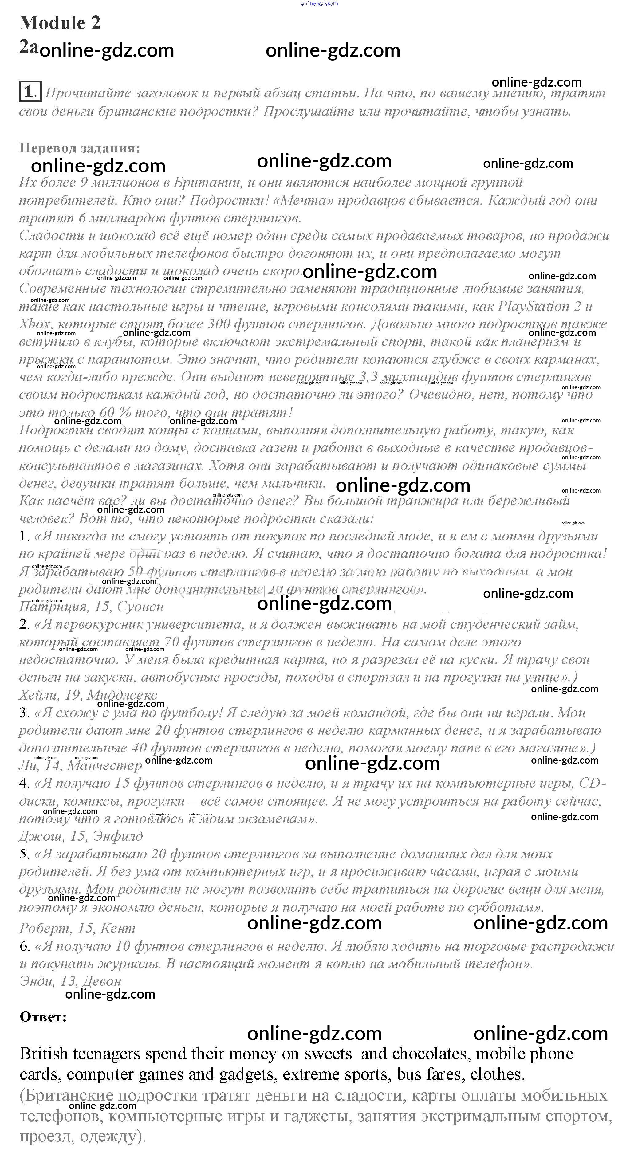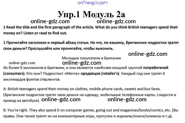 Готовые домашние задания по Английскому языку за 10 класс Учебник Афанасьева, Дули Spotlight 2015 - Часть 2a Module 2 1