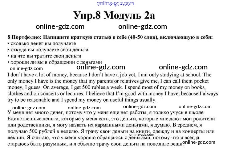 Готовые домашние задания по Английскому языку за 10 класс Учебник Афанасьева, Дули Spotlight 2015 - Часть 2a Module 2 8