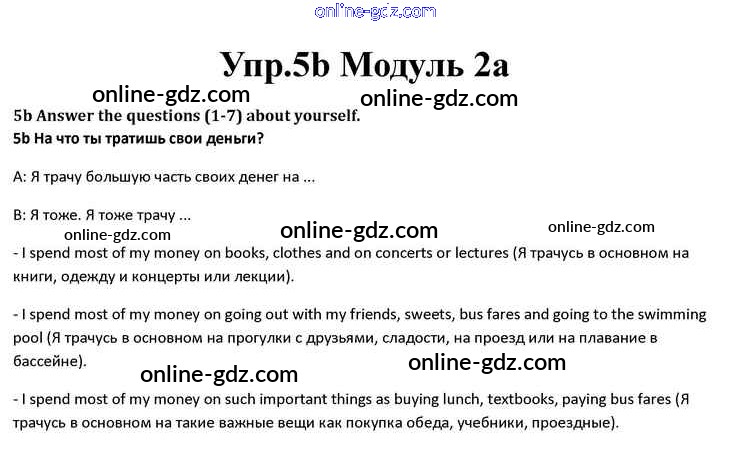 Готовые домашние задания по Английскому языку за 10 класс Учебник Афанасьева, Дули Spotlight 2015 - Часть 2a Module 2 5b