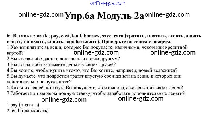 Готовые домашние задания по Английскому языку за 10 класс Учебник Афанасьева, Дули Spotlight 2015 - Часть 2a Module 2 6a